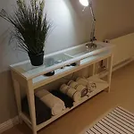 Det finns strykutrustning och strykjärn med strykbräda samt TV och plattskärms-TV med satellitkanaler för optimal komfort. Förutom soffa och arbetsbord har inredningen sten eldstad. I badrummet finns även en separat toalett, ett badkar och en dusch. Hårtorkar, badmössor och badlakan ingår för extra komfort.